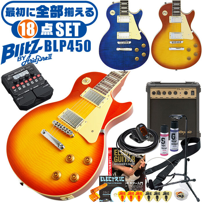エレキギター 初心者セット ブリッツ by アリアプロ2 BLP-450 (18点 ズーム マルチエフェクター G1 Four) レスポール タイプ ギター 入門 セット