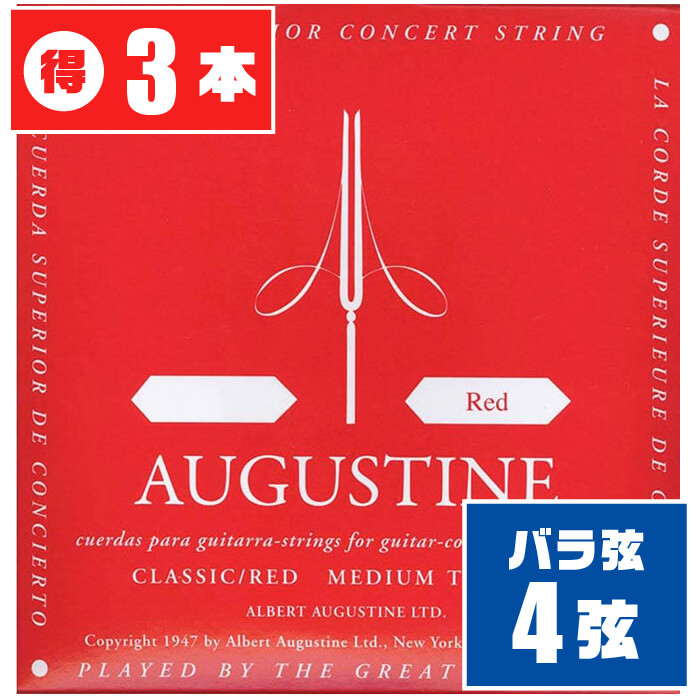 クラシックギター 弦 (バラ 4弦) AUGUSTINE RED (3本) ミディアムテンション (オーガスチン レッド)