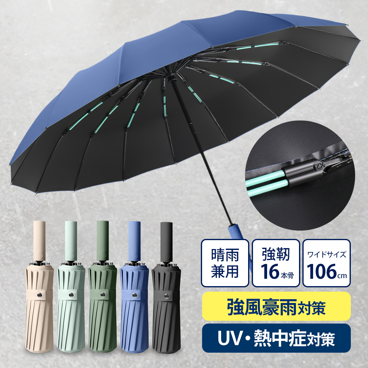 ★強風に強い16本骨(ダブル構造で計32本)