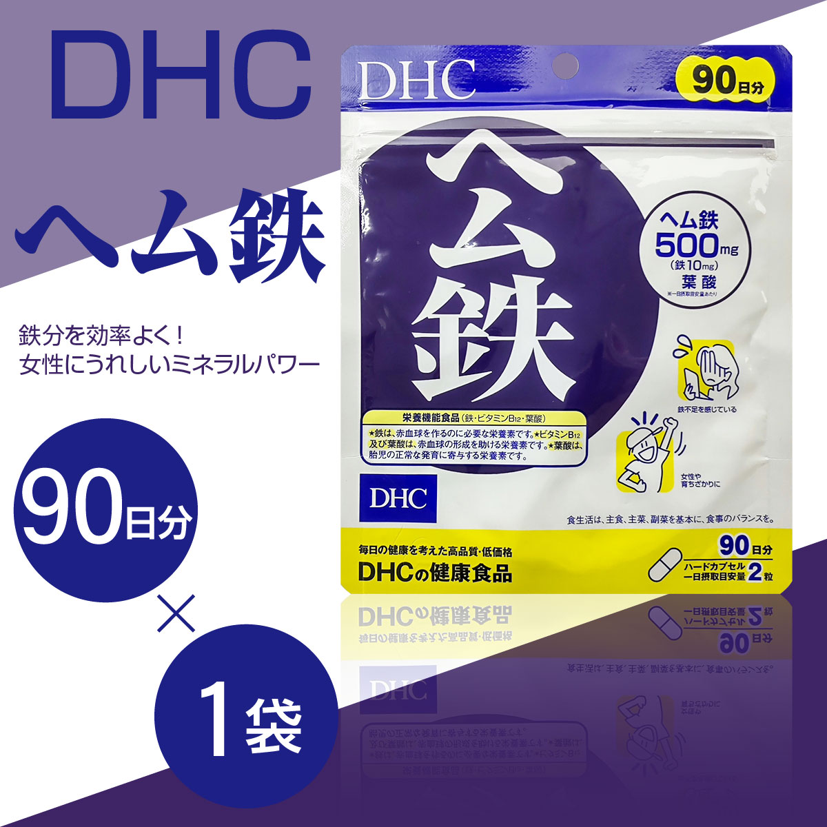ヘム鉄 DHC サプリメント 徳用90日分 まとめ買い割引 1袋 2袋 3袋 4袋 5袋 ビタミンB12 葉酸 国産 日本産 貧血 妊娠 ダイエット 月経不順 栄養機能食品 健康