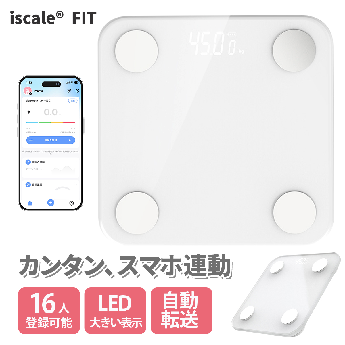商品名:【iscale公式 正規品】「iscale FIT」 体重計 体組成計 体脂肪計 スマホ連動 Bluetooth ヘルスメーター 体脂肪率 基礎代謝量 iPhone Andoroid アプリ連動 ダイエット