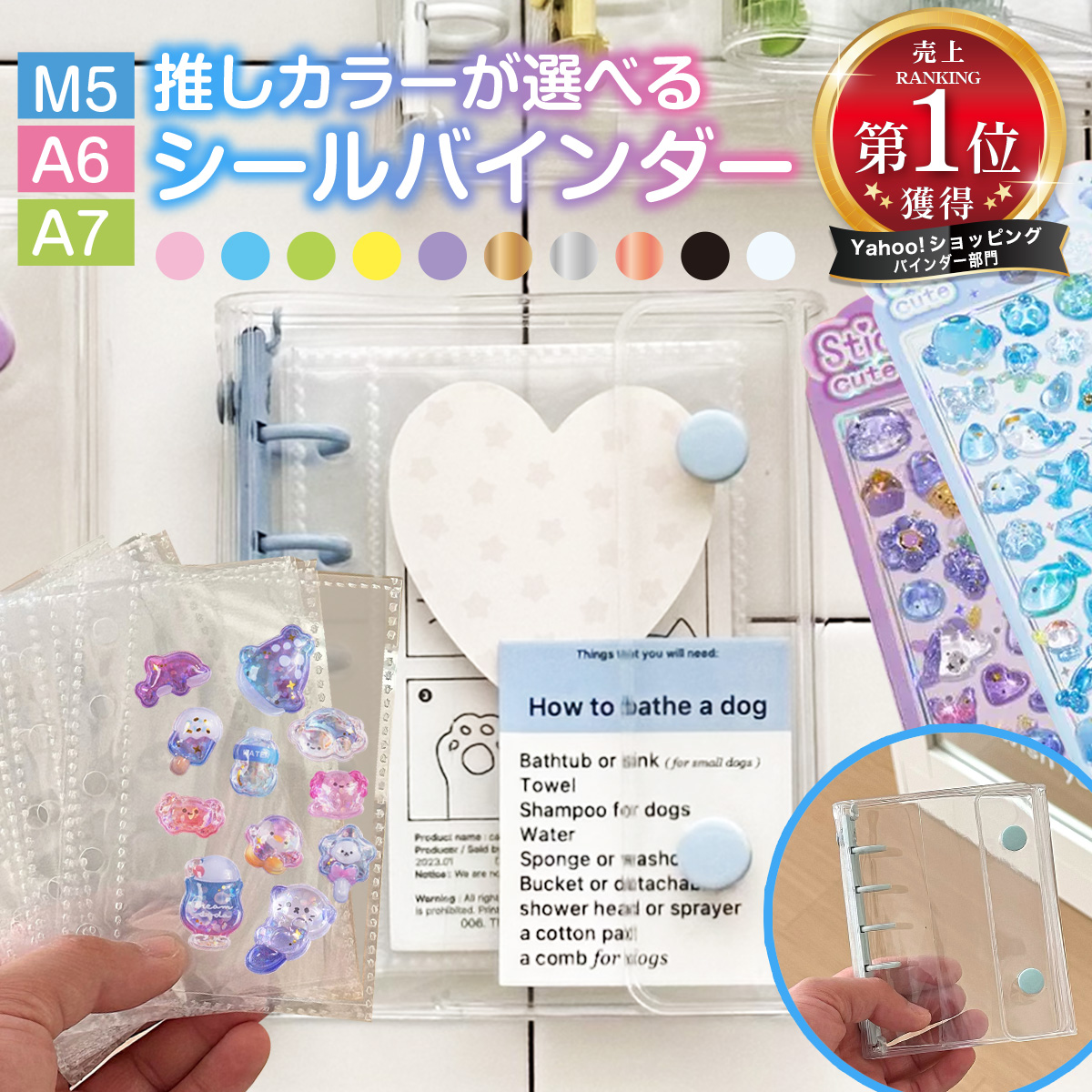 シール帳 バインダー リフィル10枚付属 透明 クリア ホルダー ファイル ケース A7 M5 はがせる 女の子 手帳 ノート メモ帳 トレカ かわいい おしゃれ
