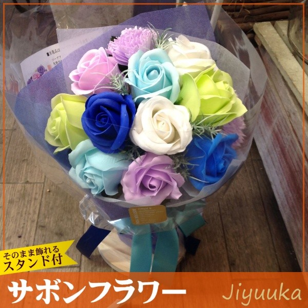内容:サボンフラワー:花ミックス12本(バラ、カーネーション) スタンド付き