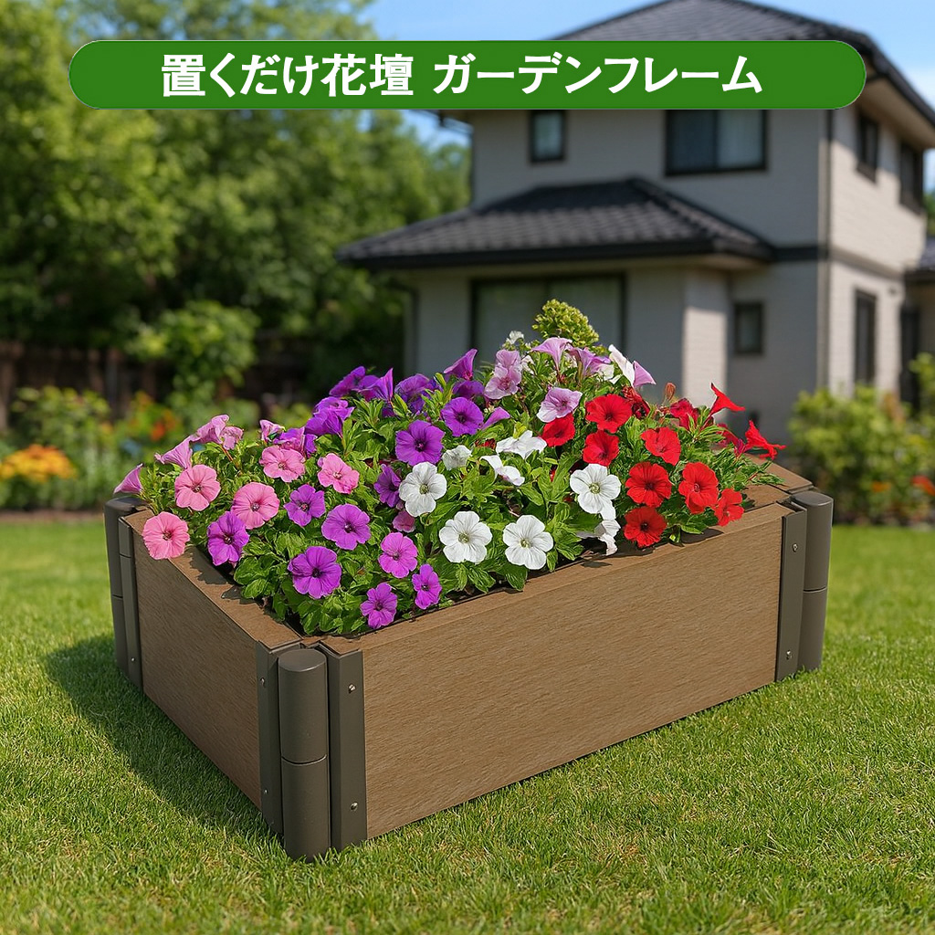 | ■接続・連結部分に若干の隙間がございます。水やりをすると、隙間から水や土が漏れる場合がございますので、「市販の園芸用シート」や「養生テープ」のご使用を推奨しております。 ■土に触れた状態が続く事で人工木材にカビが発生する場合や歪み・変形が生じる事がございます。(「市販の園芸用シート」等をご使用する事で防止可能) ■完成後に持ち上げたり移動させたりすると、部材が外れる仕様となっております。移動させる際には分解して、再組み立てが必要となります。(商品不良ではございません) |