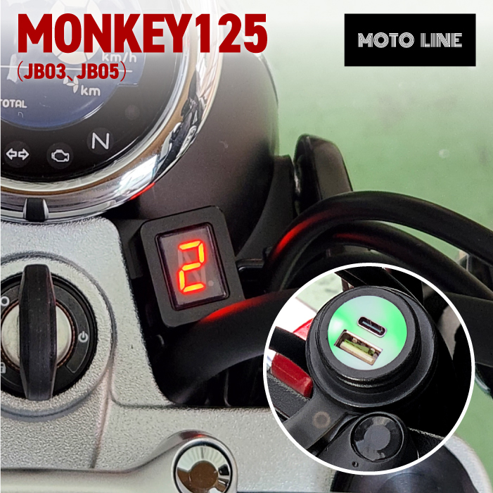 ホンダ モンキー MONKEY125(JB03 JB05) シフトインジケーター ハーネスキット + USBチャージャー(クランプ式) MOTOLINE HONDA