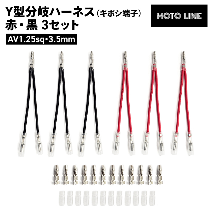 汎用 Y型分岐ハーネス ギボシ端子 赤・黒 3セット AV1.25sq 3.5mm MOTOLINE