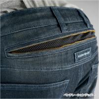 両腿と腰部にベンチレーションを装備し快適性を向上した着脱透湿防水ライナー装備のフルイヤー仕様(※)高機能ライディングデニム。