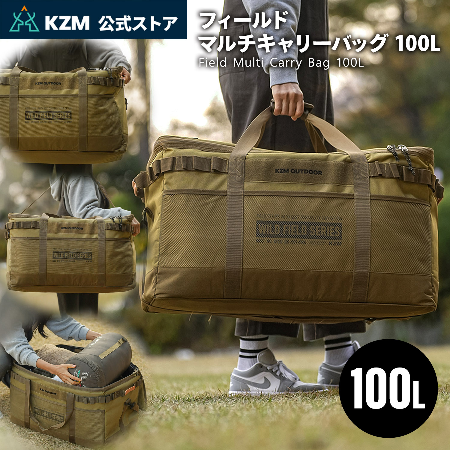 KZM キャンプ バッグ 大容量 収納バッグ マルチ収納 おしゃれ キャンプ アウトドア フィールドマルチ フィールドマルチバッグ100L