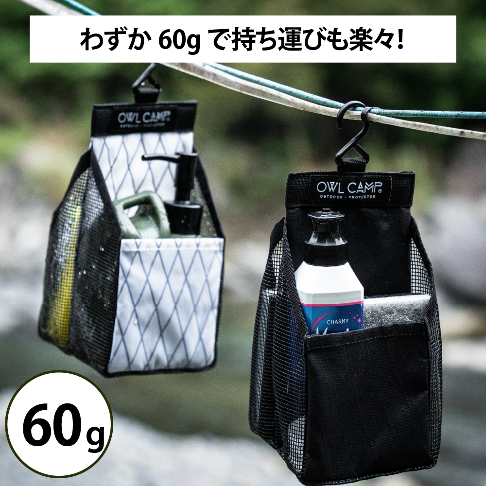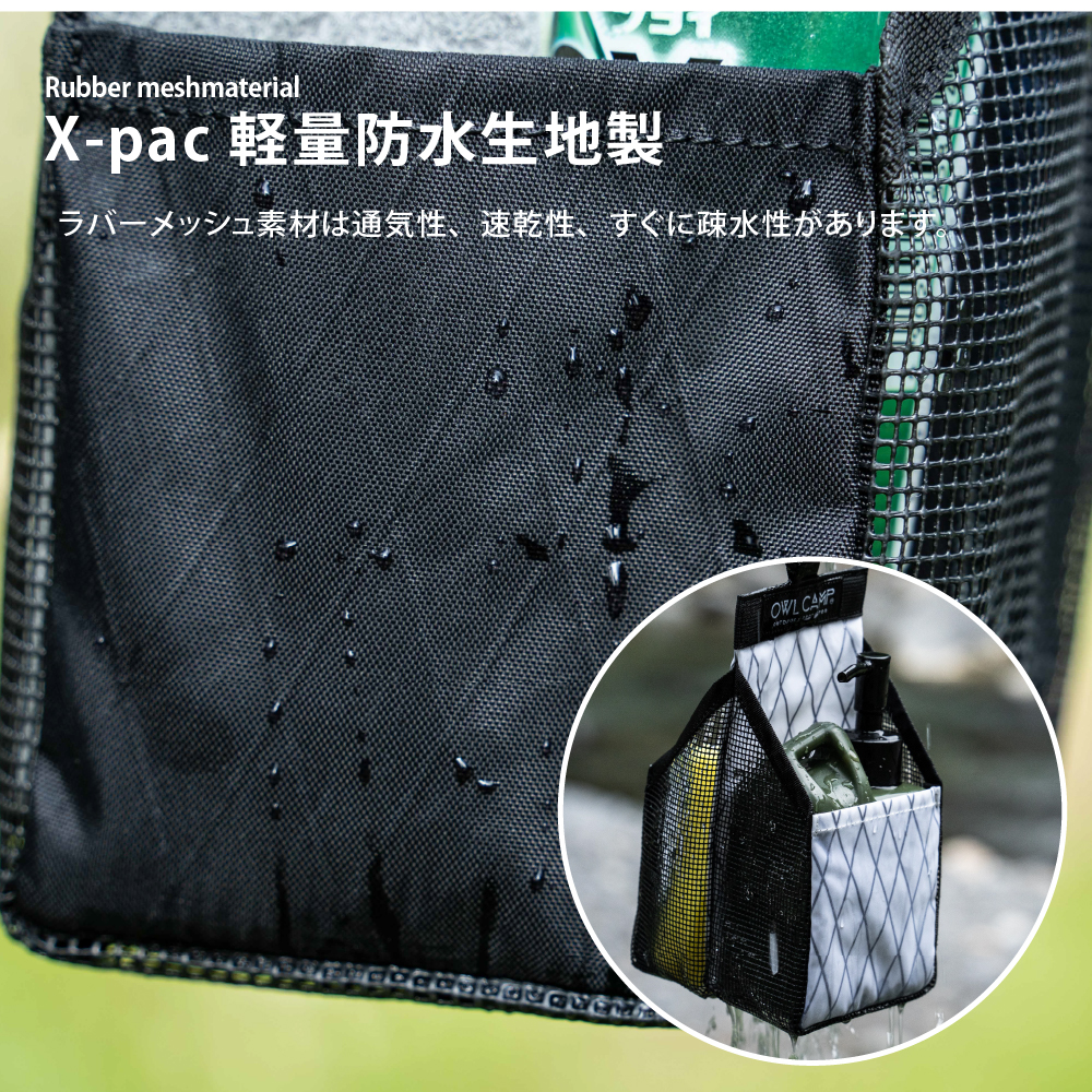 OWL CAMP メッシュ 軽量防水生地 X-pac キッチン ケース ラバーメッシュ 通気性 速乾性 フック バッグ アウトドア 軽量 キャンプ リゾート メッシュ素材
