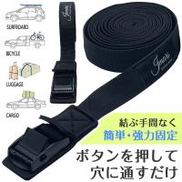 カムバックル式で誰でも簡単にワンタッチ装着。耐久試験済で安心。防災、引っ越し時の荷物固定にも便利な万能ベルトです。