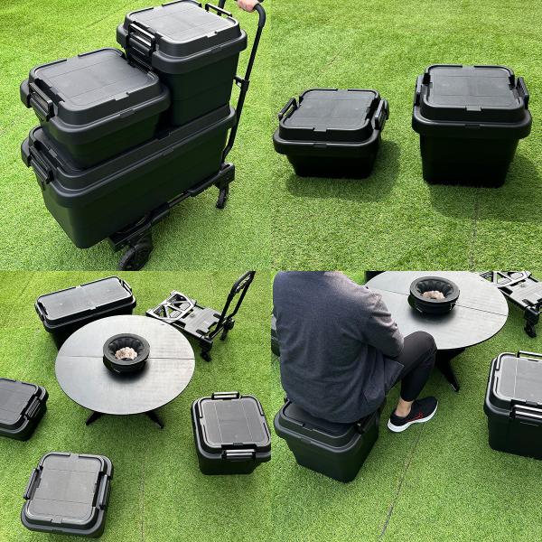 | DETAIL | ・トランクカーゴのフタが平らになったスタッキングタイプ キャンプを始めとしたアウトドアでのご利用はもちろん ベランダやお庭に設置して屋外ストッカーとしての利用 また緊急時に備えた防災グッズ収納などとしても。 耐荷重100kgを誇る耐久性で、 テーブルや椅子としても利用することが可能。 持ち運びを考慮した取っ手付きバックル 積み重ねても安定するスタッキング性 車のルーフキャリーなどに載せる際に固定しやすいベルトガイド付き。 ■仕様 ・シボ加工 ・サイズ 外寸:W400×D390×H240(mm) 有効内寸:W309×D305×H192(mm) ・重量/容量 1593g/18L ・材質/原産国 PP(ポリプロピレン)/日本 |
