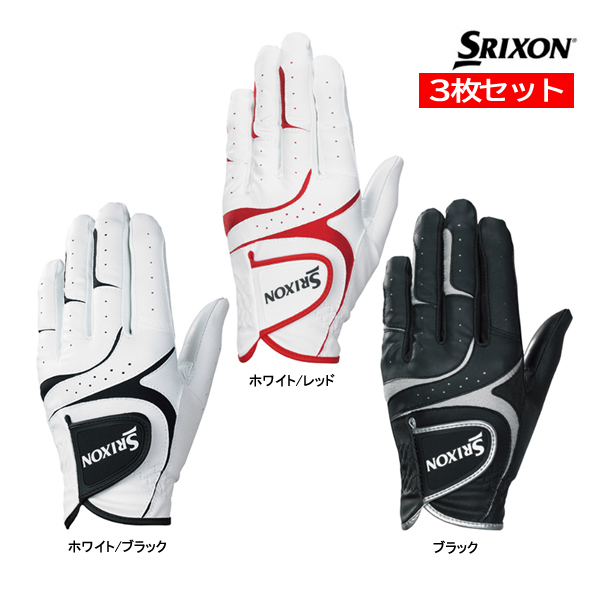 3枚セット スリクソン ゴルフ メンズ グローブ GGG-S031 片手 左手 右利き SRIXON DUNLOP ダンロップ 21 22 23 24 25 26cm ホワイト レッド ブラック