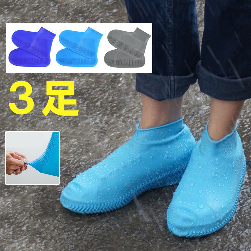 特価セール 3足セット シューズカバー 靴用防水カバー シリコン 泥汚れ防止 靴のカッパ 雨の日対策 梅雨対策 靴カバー ネコポス送料無料 翌日配達対応