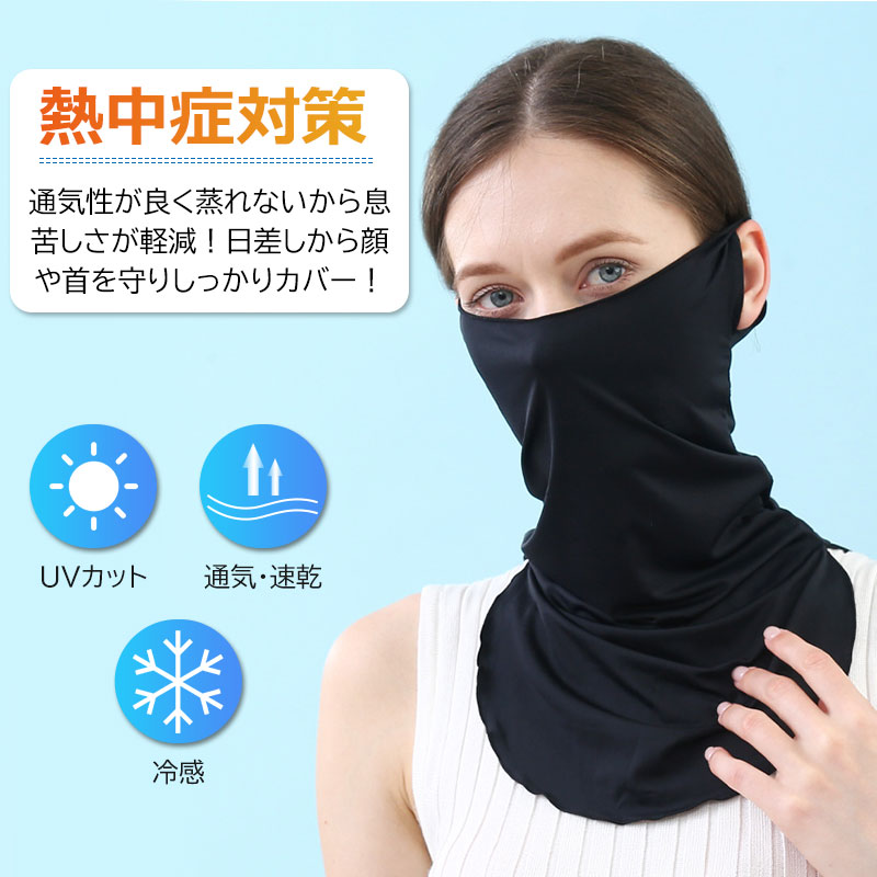 特価セール フェイスカバー UVカット UPF50+ 冷感 ネックカバー フェイスガード 耳掛け 日よけ フェイスマスク アウトドア ネコポス送料無料 翌日配達対応