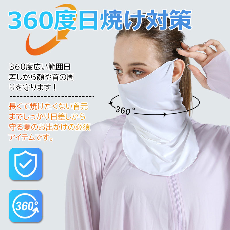 360°顔+首の日焼け防止 フェイスカバー ネックガード 日焼け防止 マスク 首 日焼け対策に UVカット 冷感フェイスマスク 紫外線対策 日焼け レディース ゴルフウェア 女性 夏 洗える ネックカバー フェイスガード アウトドア フェイスマスク 吸汗速乾 日焼け 耳掛け バイク 自転車 テニス ゴルフ