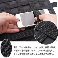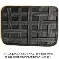 ゴムベルト式バッグインバッグ!ガジェット&デジモノアクセサリなどを固定できるツールです!縦横に走るゴムバンドでどんな大きさ・形のものでも、はさむことができます。 いろいろなものが収納できるので、使う人の発想やアイデアで使い方が広がる新感覚のインナーケースです。固定ゴムは特殊素材でできており、表面の摩擦で挟んだものを傷つけず、しっかりと固定し、どんな小物類も滑り落ちることはありません。使い方は自由で、好きな位置に好きな物をパズル感覚で挟んでください。強度は硬く厚みのある素材のため、頑丈で折れ曲がることはありません。 カバンの中に入れるのはもちろん、壁に掛けたままや自動車内の整理などにも使用することも可能!