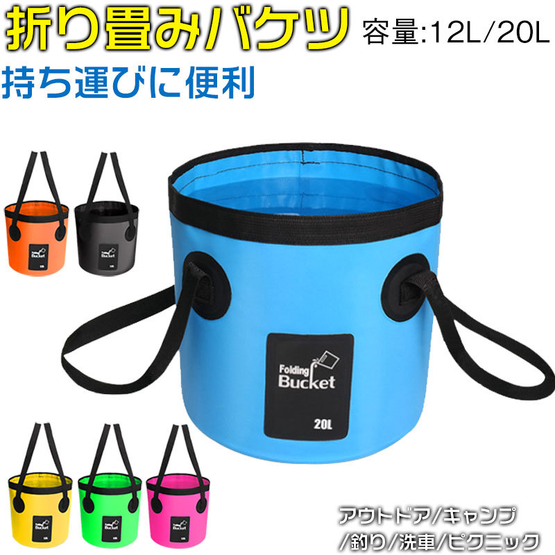 折りたたみ バケツ 12L 20L 大容量 持ち運びに便利 アウトドア キャンプ 釣り 洗車 ピクニック 収納 折りたたみができる 防水 折りたたみバケツ バッカン 折り畳み 花火バーベキュー BBQ ガーデニング