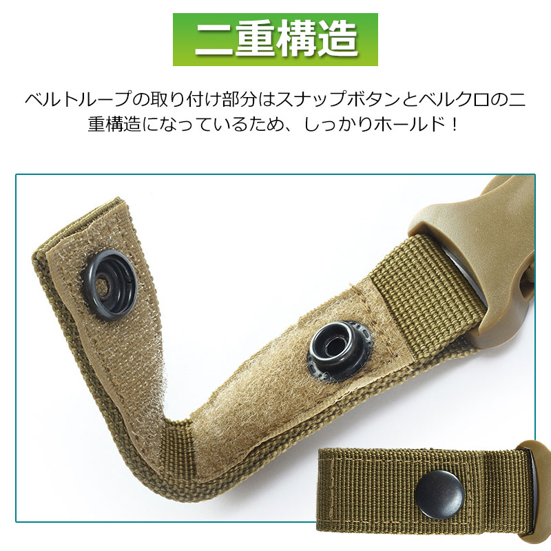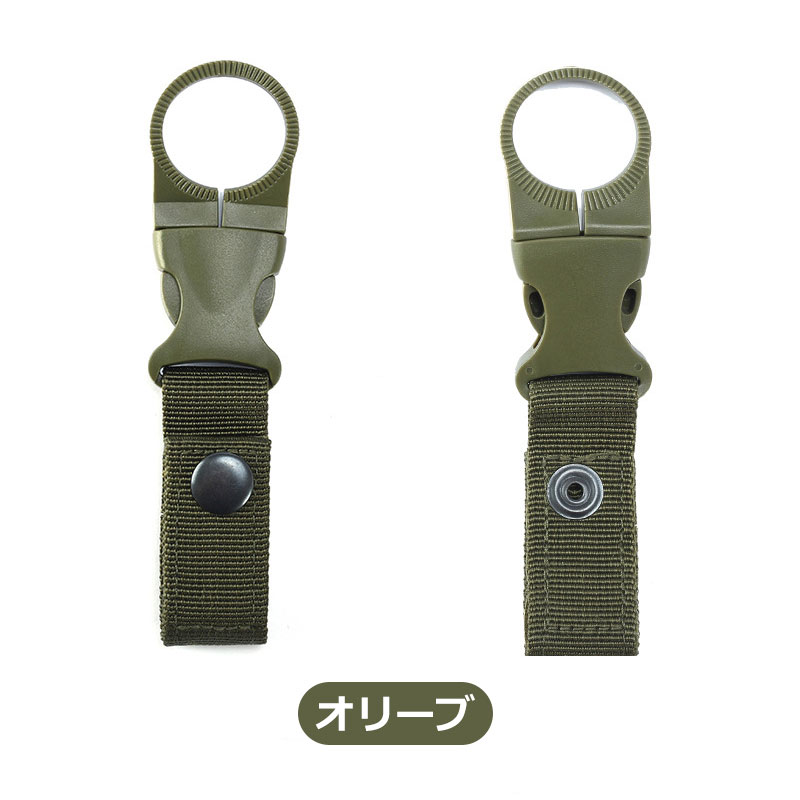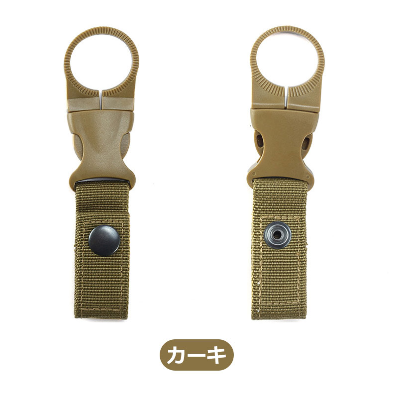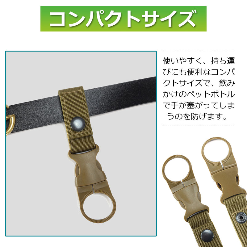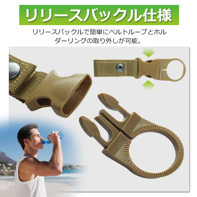 ボトルホルダー ベルト通し 飲み物 持ち運び 登山 アウトドア レジャーペットボトルキーパー MOLLE ベルクロ着脱式 ボトルフック ミリタリー ベルト スナップボタン リリースバックル ベルトキーホルダー ボトルホルダー