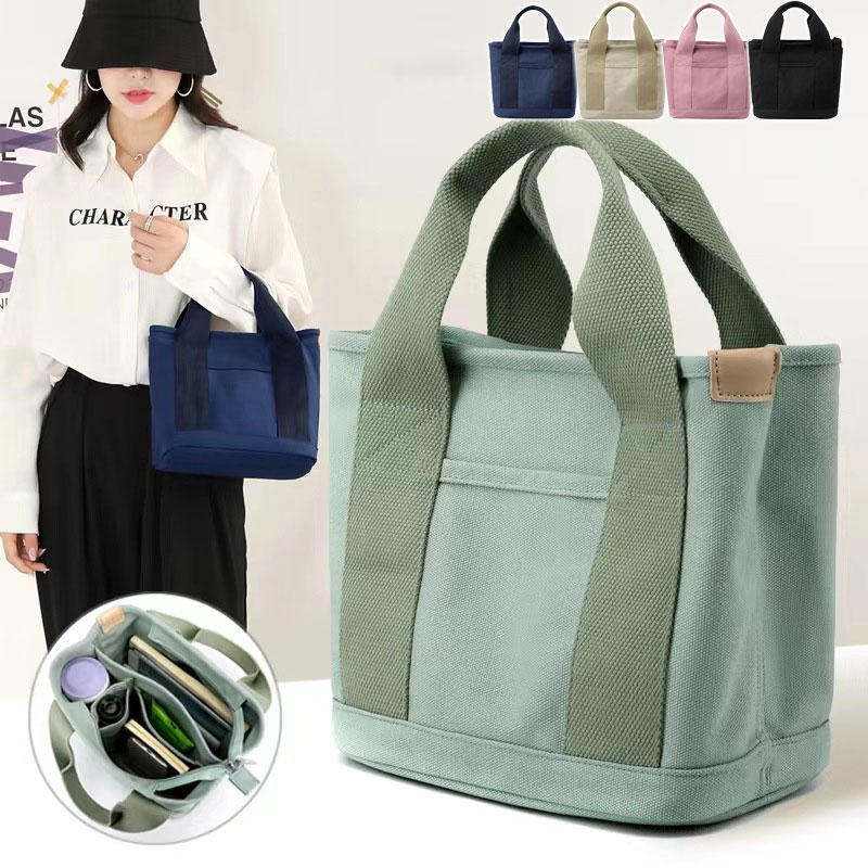 キャンバスバッグ レディース ミニトートバッグ 仕切り ミニバッグ ミニトート ランチバッグ エコバッグ ハンドバッグ キャンバス 小さめ 無地 マザーズバッグ