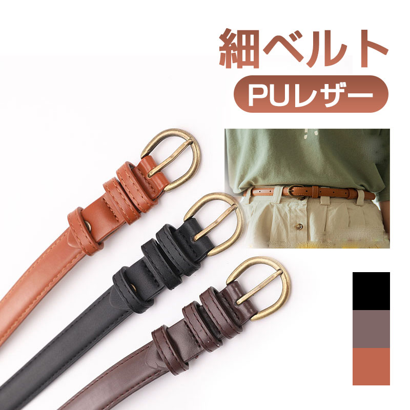 ベルト 細ベルト 穴あき PUレザー ワンピース用 無地 ベルト レディース ネコポス送料無料 翌日配達対応