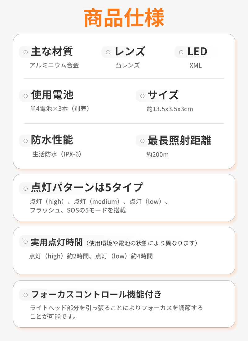 ■超高輝度LED&約200m照射最長照射距離は約200m!