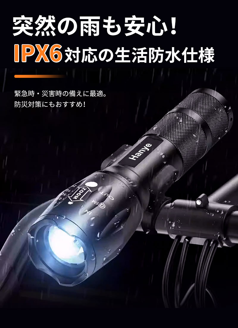 ■突然の雨も安心!IPX6対応の生活防水仕様キャンプ中の急な雨や、作業場での水はねなどを気にせずご使用いただけます。