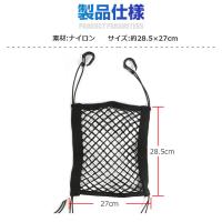 座席間に取り付けるメッシュネットです。車内空間を有効に活用する収納用グッズです。収納能力抜群、ティッシュやスマホなどの小物を簡単にまとめ収納ができます。その他、車にペットを乗せる際などに、後部座席から前に飛び出してこないように防ぐことも可能です。しっかり遮断できますので、ペットに限らずその他の用途にもお使い頂けます。ダブルネットで、荷物を挟んで保持できます。留め具はフック式で、取り付けや取り外しが簡単です。ヘッドレストのパイプとシート下部に掛ければOKです。周囲に伸びるので様々な車種に対応します。