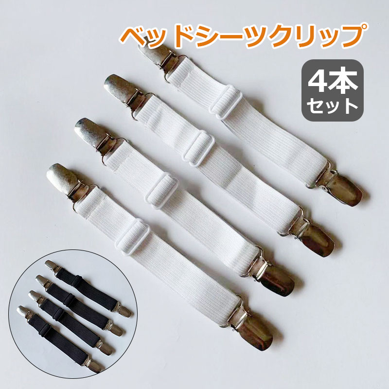 特価セール ベッドシーツクリップ シーツ固定 布団クリップ ズレ防止クリップ ゴムバンド 調節可能 4本セット ネコポス送料無料 翌日配達対応
