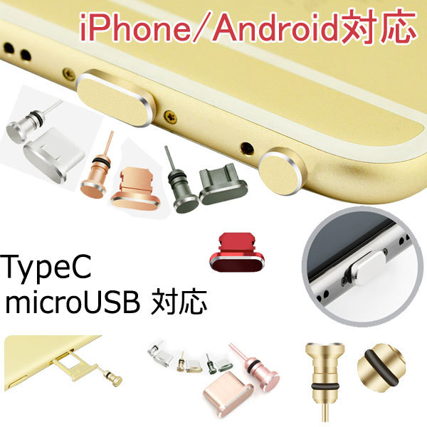 アクセサリー アルミ キャップ ライニングコネクタ スマホ 防水 イヤホンジャック充電コネクタ Lightning Type C microUSB