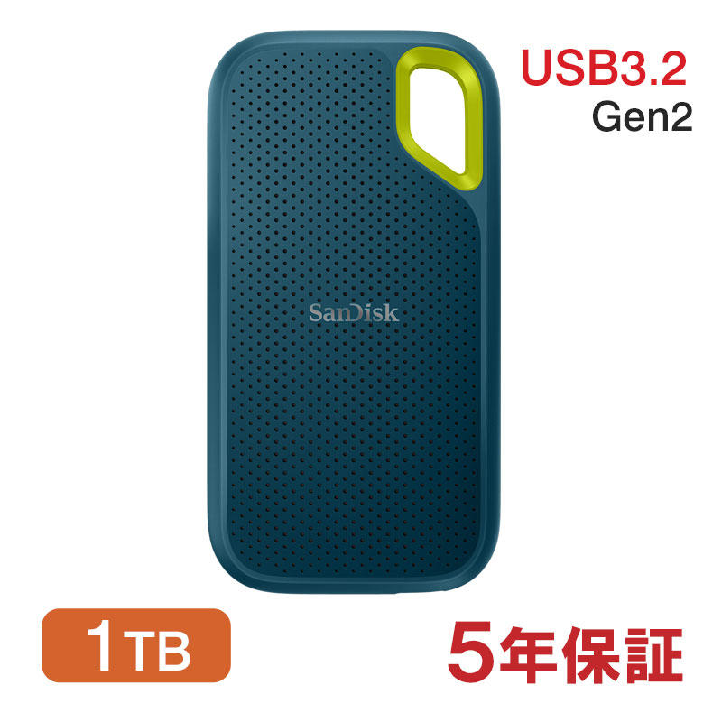 SanDisk Extreme ポータブルSSD 1TB USB3.2 Gen2 R:1050MB/s W:1000MB/s 外付けSSD SDSSDE61-1T00-G25M【翌日配達】5年保証 並行輸入品