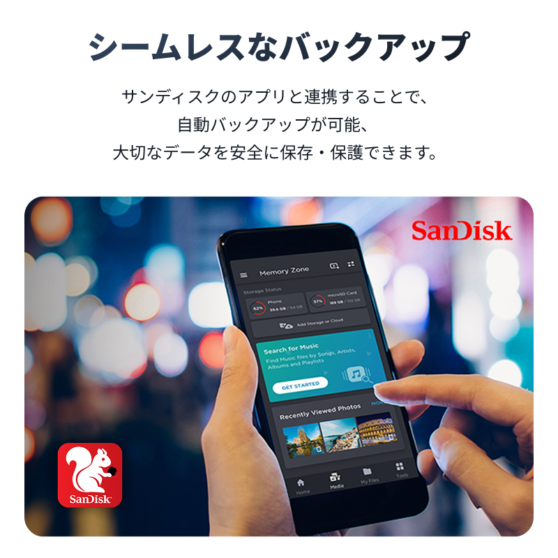 サンディスクのアプリに簡単に接続してシームレスに自動バックアップを行い、重要なデータを安全に保存し、保護できます。