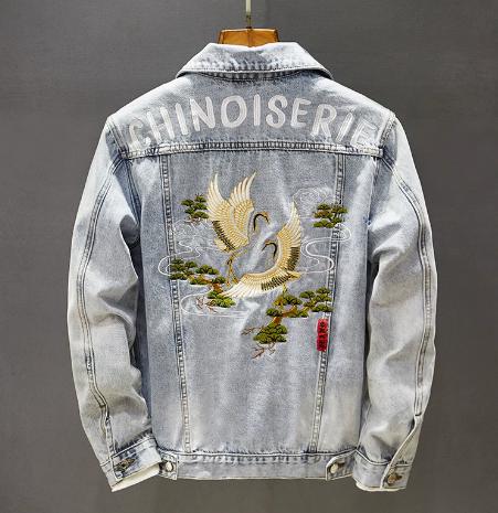 デニムジャケット 刺繍 メンズ Gジャン 春 デニムアウター ジージャン 鶴の刺繍 お洒落 デニム カジュアル XLサイズ