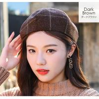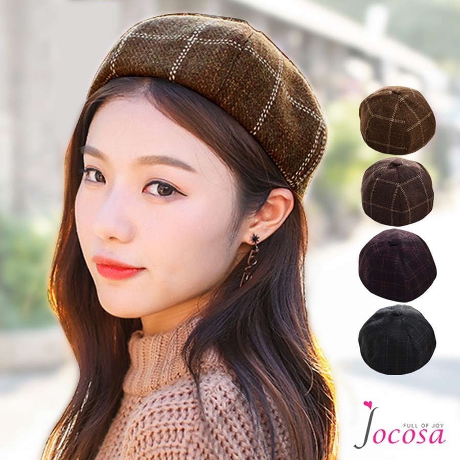 ベレー帽 チェック柄 チェック レディース ベレー 帽子 春 秋 冬 おしゃれ 可愛い 韓国風 ブラウン 茶 ダークブラウン ワインレッド ネイビー JOCOSA 8479
