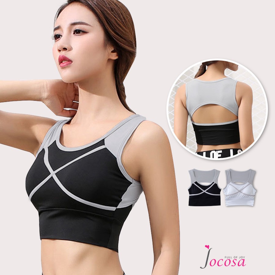 スポーツブラ スポーツウェア レディース ライン クロス ツートン バイカラー スポブラ ブラトップ インナー カップ付き ブラック 黒 ホワイト 白 JOCOSA 8724