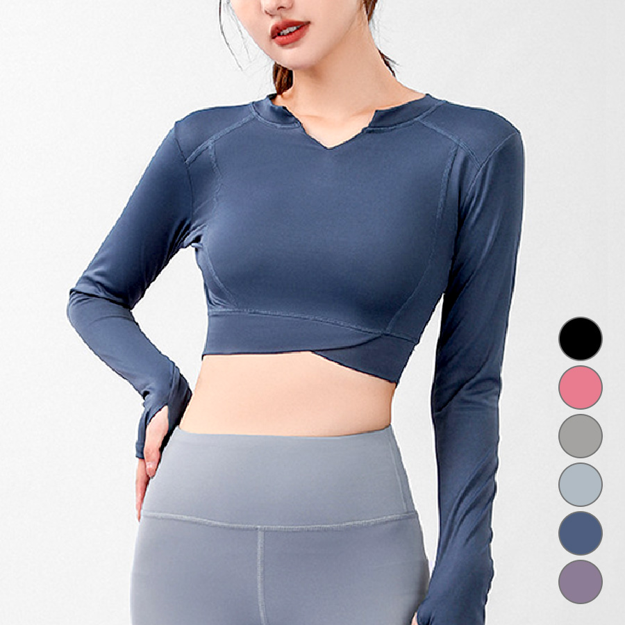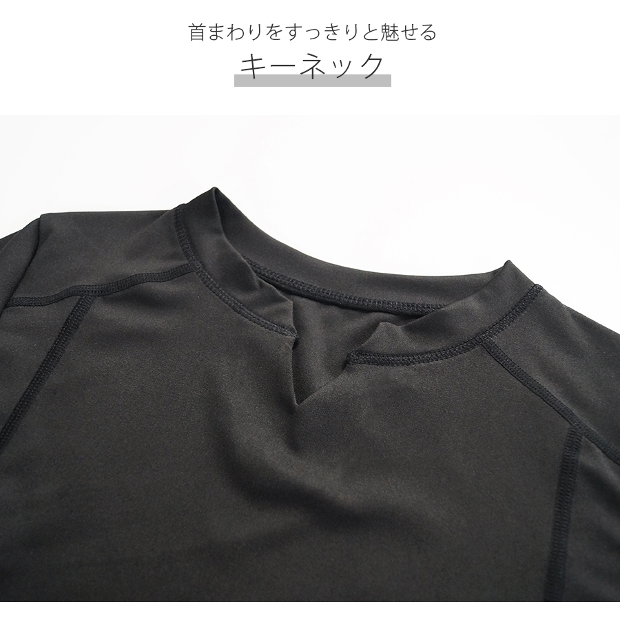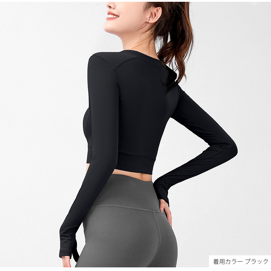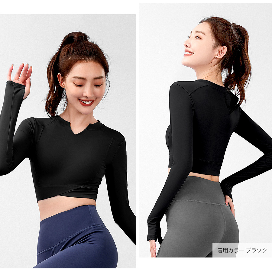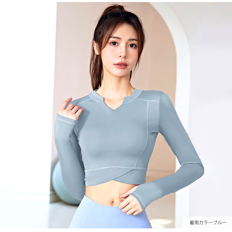 キーネックが今年らしいショート丈スポーツウェア。無地でシンプルながらさりげないステッチ等のデザイン性で使いやすさ◎指穴つきの長袖なので動いてもズレにくく安全・防寒対策も♪なめらかな触り心地の生地を使用しているので、動きやすく着心地も抜群です。