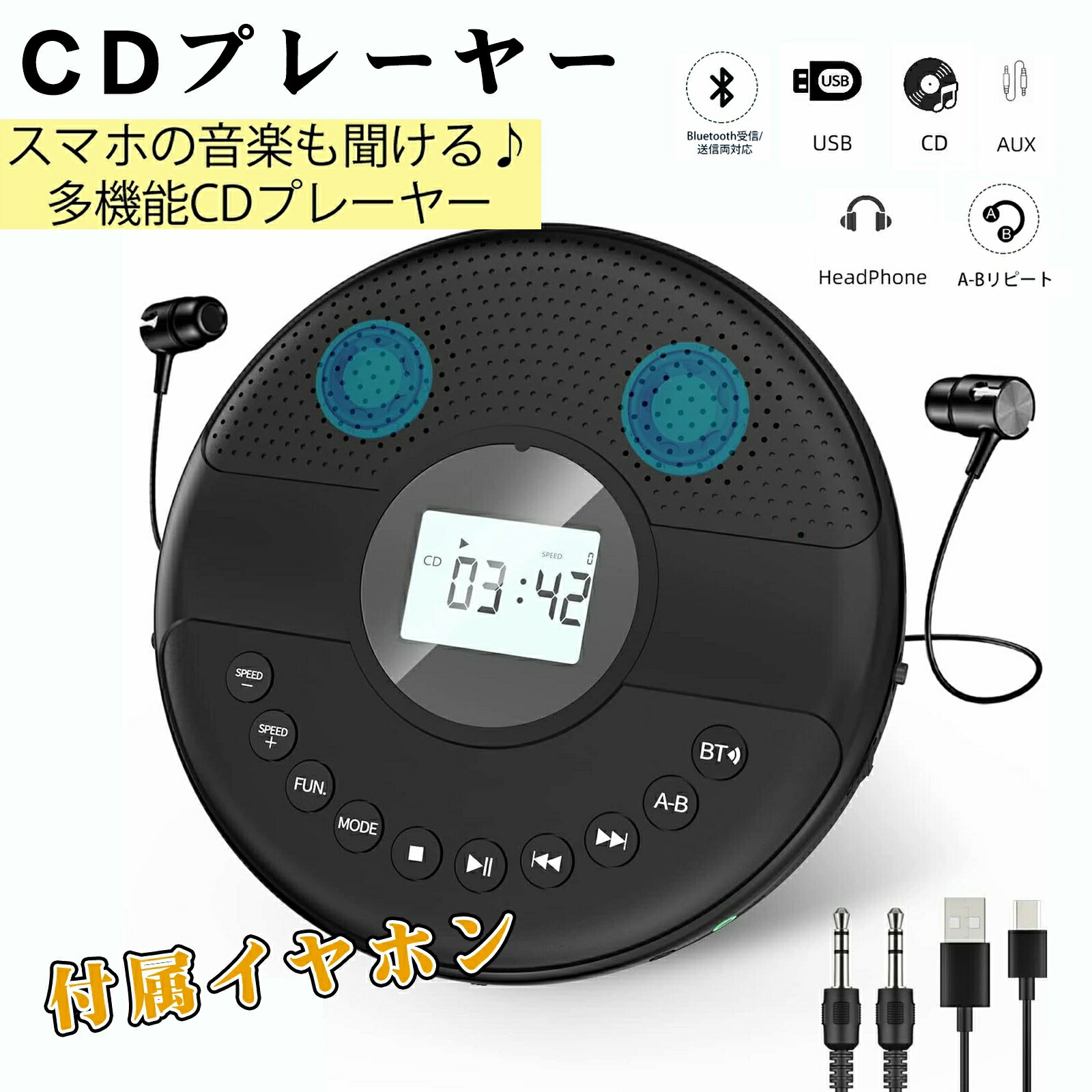 #CDプレーヤー #ポータブル 車載 CD #Bluetooth受信/送信 #CDプレイヤー #USBメモり対応 #高音質 #AUX機能 #再生スピード調節 #リピート再生 #CDウォークマン #コンパクト #3.5mmイヤホン対応 #音楽鑑賞 #語学学習 #素敵なプレゼント