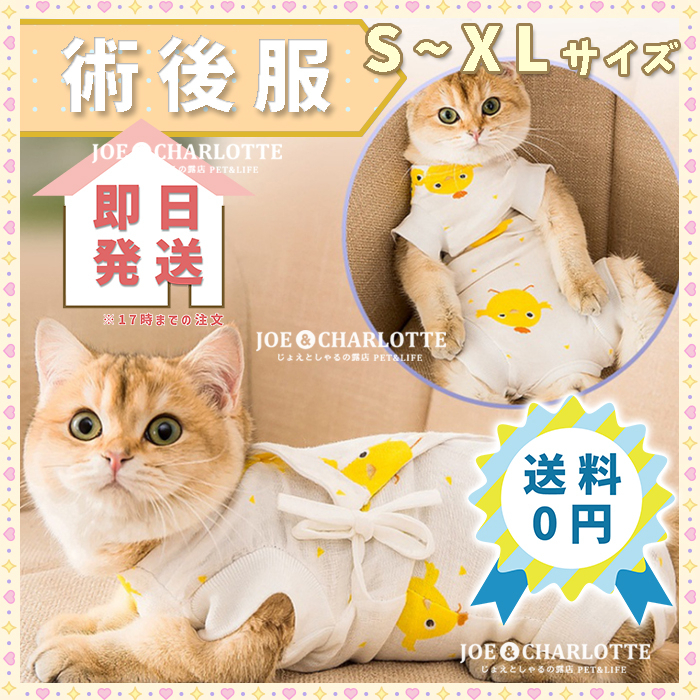 エリザベスカラー 術後服 ひよこ柄 浴衣タイプ ボタンタイプ 犬 猫 オス メス 兼用 皮膚保護 去勢 避妊 術後 離乳 フィット 綿ジャージ S M L XL