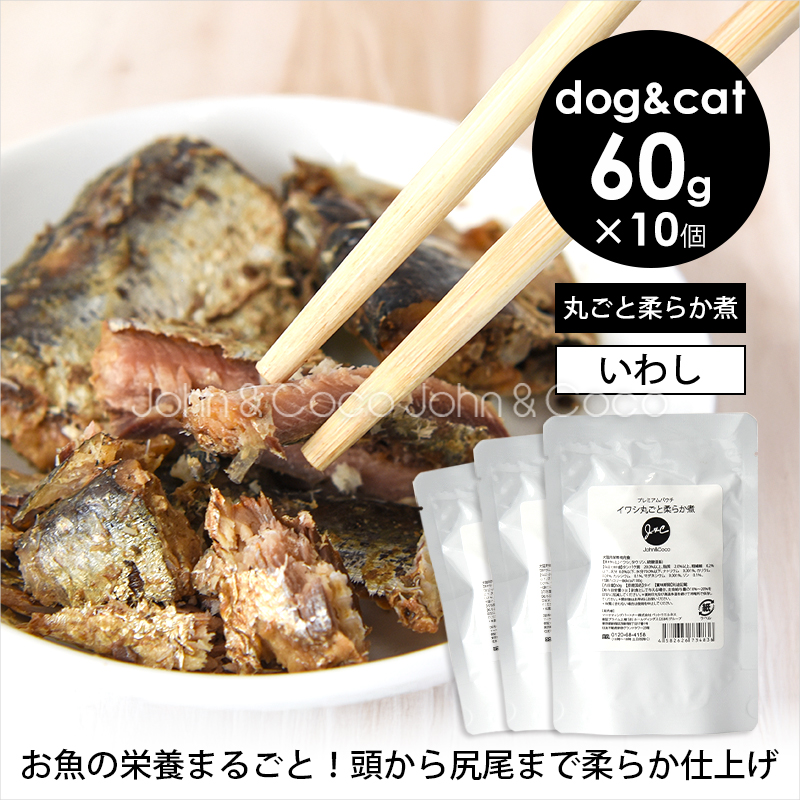 J&C プレミアムパウチ イワシ丸ごと柔らか煮 60g×10個 犬 猫 ドッグフード キャットフード ウェットフード レトルト トッピング 魚