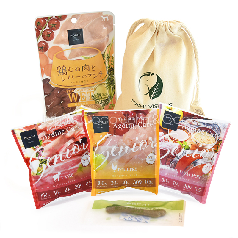 POCHI(ポチ)ザ・ドッグフード エイジングケアシニアシリーズは、シニア犬の健康維持のために低カロリー、低脂質、低リン設計、認知機能を維持するためにMCTオイルを配合。