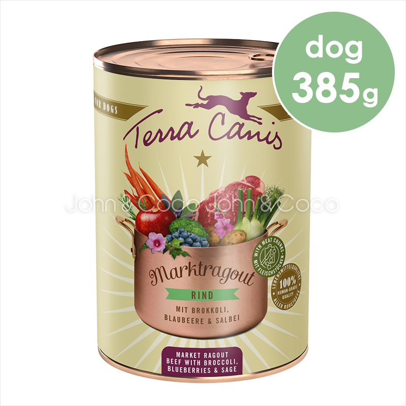ビーフハート、ビーフ(精肉)、 ニンジン、ポテト、ブロッコリー、ビーツ根、スイートポテト、リンゴ, フェンネル 、ブルーベリー、菜種油、ココナッツフレーク、ビール酵母、オイスターシェル、セージ、タラゴン、ハイビスカス、チャービル、ゴマ、ミネラルクレイ、アンデスソルト、海藻、ミネラル類