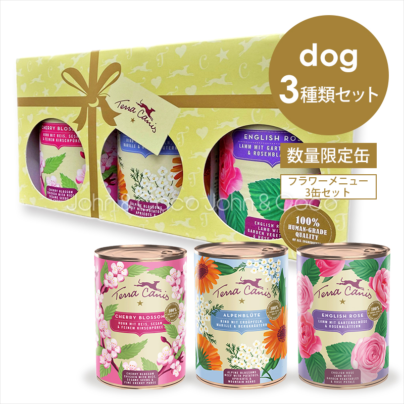 テラカニス フラワーメニュー アルプスフラワー 400gアルプス山脈で花が咲く草原をイメージして作られ、牛肉をベースに、キュウリやビーツ、トマトなどの野菜や、リンゴやラズベリーなどのフルーツ、ハーブを加えています。