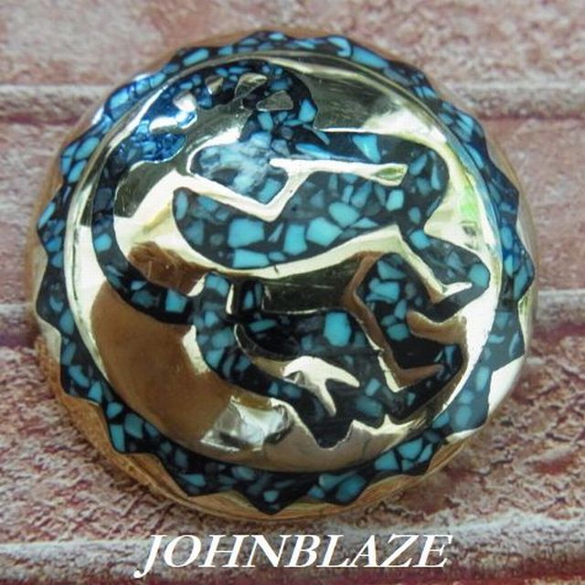 金色 真鍮製 コンチョ ネジ式 ネイティブ ココペリ 天然石 ターコイズ ブラスト ブラス製 ネジ付 スクリューバック シカゴスクリュー ボタン