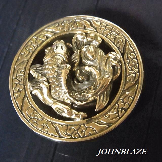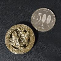 飾りボタン コンチョ ネジ式 鯉の滝登り メダル型 和柄 日本 縁起物 風情 鯉 金色 真鍮製 ブラス ネジ付 スクリューバック シカゴスクリュー パーツ