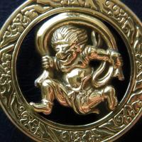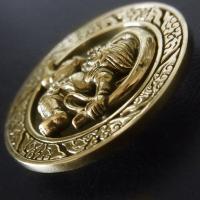 飾りボタン コンチョ ネジ式 金色 風神 雷神 風袋 連鼓 屏風画 日本 和 半裸鬼面 メダル型 真鍮製 ブラス ネジ付 スクリューバック シカゴスクリュー パーツ