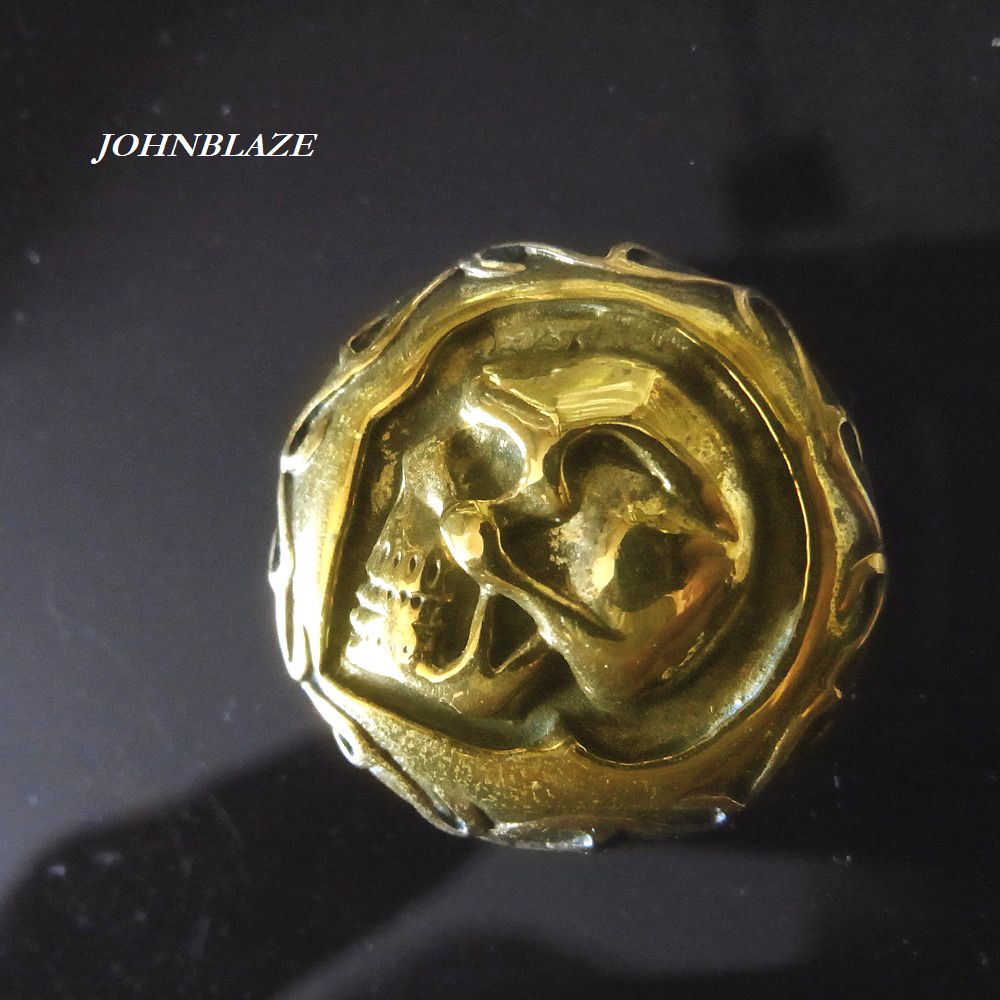 金色の真鍮製 コンチョ ネジ式 スカル 横顔 髑髏 ガイコツ ネジ付 スクリューバック シカゴスクリュー 飾りボタン カスタム ドレスアップ
