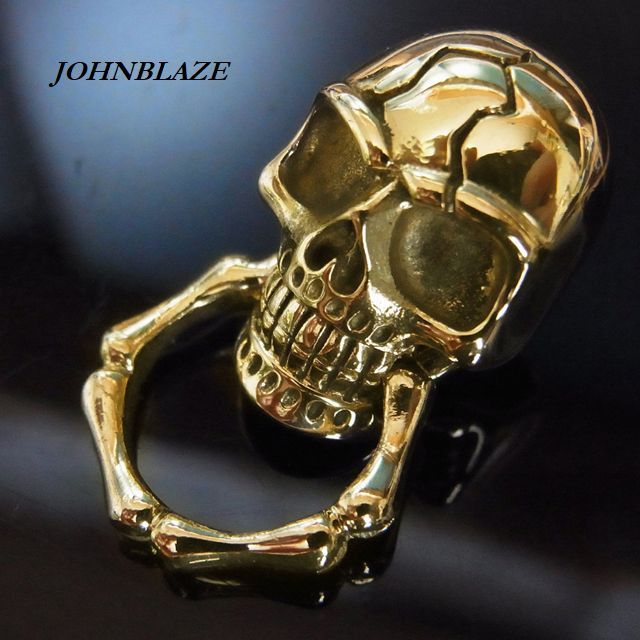 ドロップハンドル ネジ式 真鍮製 ブラス 金色 スカル 髑髏 ガイコツ シカゴスクリューバック ジョイントパーツ マルカン リング付 継部品 カスタム JKB-248br