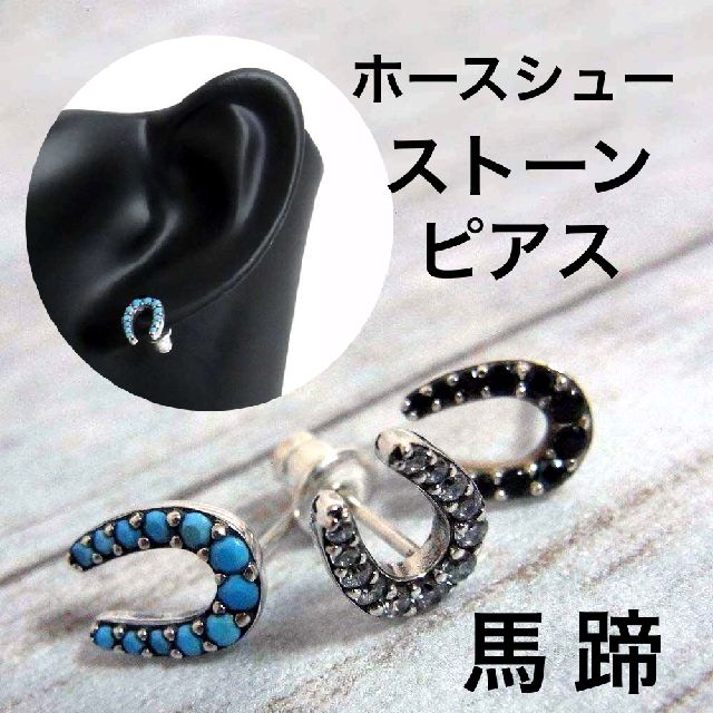 ピアス 馬蹄 ホースシュー アミュレット 天然石 ターコイズ ジルコニア シルバ−925製 片耳用1個 メンズ レディース ジュエリー おしゃれ ギフト