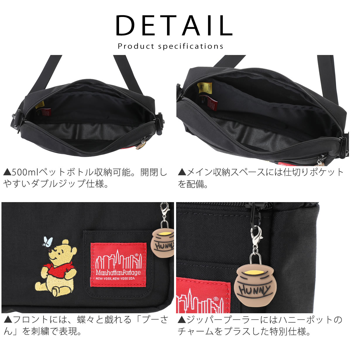 ![]() 都会的で洗練されたデザインと、高い機能性を誇るManhattan Portageのバッグシリーズに、プーさんのやさしい魅力を閉じ込めたスペシャルモデル。 見た瞬間に笑顔がこぼれるような、心あたたまるコラボアイテムです。 |