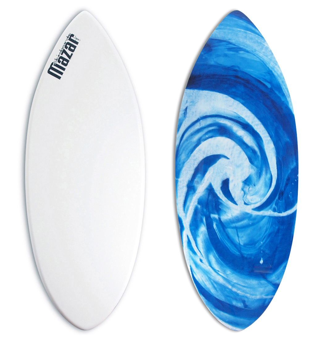 設計の力点はオンボードの確実性と水面での安定感。そしてはじかれにくいターンのコントロール性能。デッキ、ボトム共にそれぞれ16オンスのE-glassを積層し高い耐久性と衝撃強度を持たせた。適切なフレックス・浮力・弾性を兼ね備え、ライダーの技能に応じたレスポンスを発揮するオールラウンドなスキムボード。