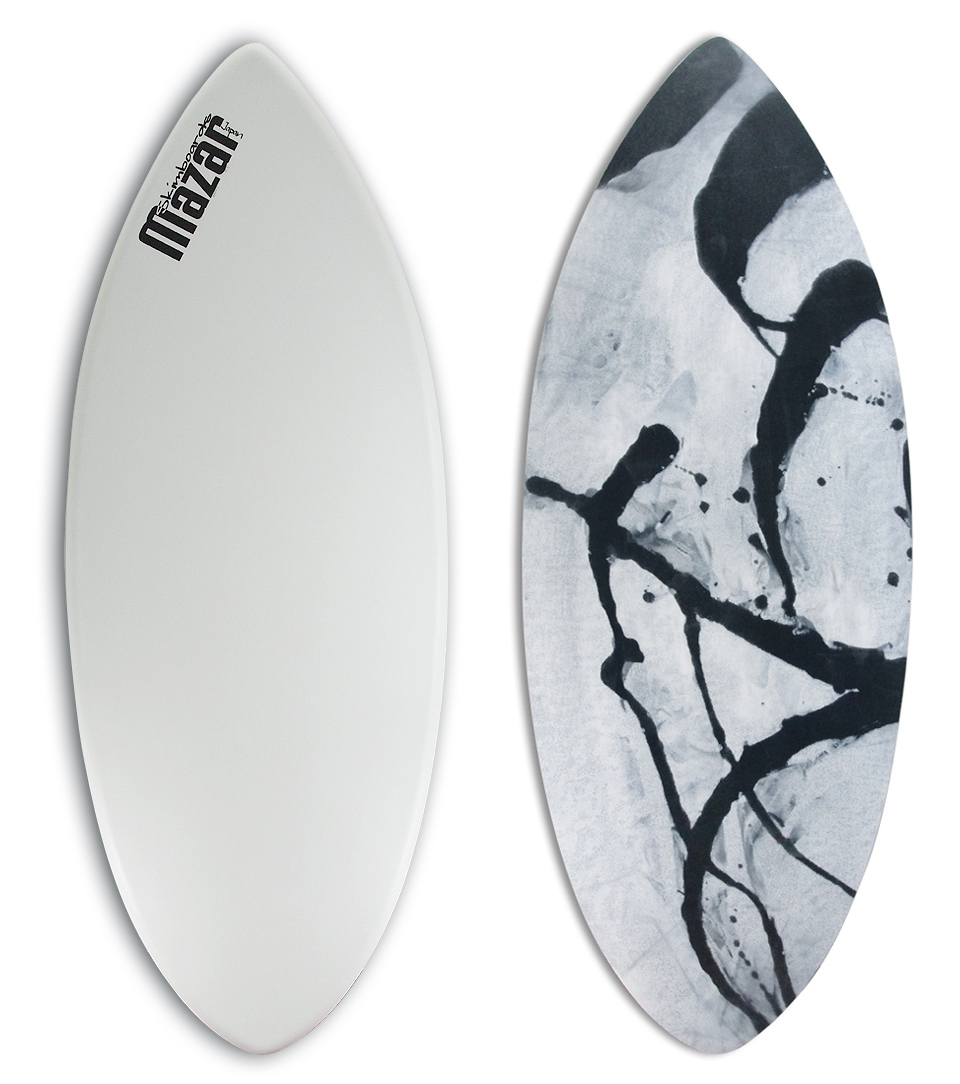 設計の力点はオンボードの確実性と水面での安定感。そしてはじかれにくいターンのコントロール性能。デッキ、ボトム共にそれぞれ16オンスのE-glassを積層し高い耐久性と衝撃強度を持たせた。適切なフレックス・浮力・弾性を兼ね備え、ライダーの技能に応じたレスポンスを発揮するオールラウンドなスキムボード。
